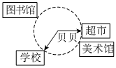 如图,贝贝站在圆中心的位置,他的12点钟方向是超市,那么(