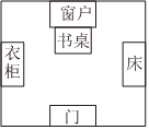 如图是田田的房间平面图。她站在房间正中央,她的12点钟方向是书桌,那么她的9点钟方向是(