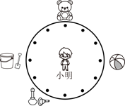 小明面向升旗台站立,他的3点钟方向是操场。现在小明向后转,这时操场在他的( )点钟方向。