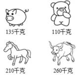有一个小桥,最多只能允许500千克的物体同时通过,下面的小动物可以一起通过的是( )