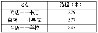 商店到饭馆一共1000米,请问学校到饭馆____米;小明家到饭馆路程长____米。