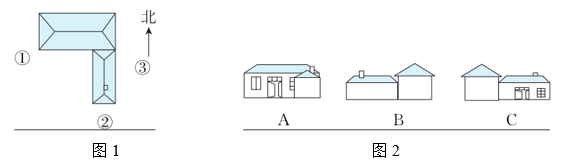 图1是在空中看到的平平的家,在图2的三幅图中,站在①的位置拍摄的是( )