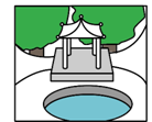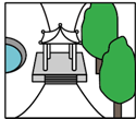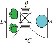 下图是公园一角的平面图,右边的图片是在位置( )拍摄的。