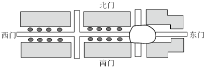 李叔叔在花园小区的“东、南、西、北”四个门各拍了一张照片。