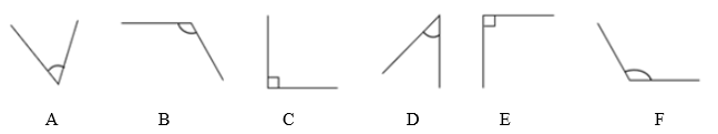 数一数:图中锐角有____个,直角有____个,钝角有____个。