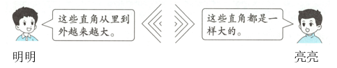 下图是由多个直角组成的图案,关于这个图案,谁的说法是正确的?( )