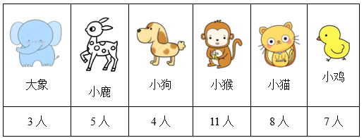 (2)喜欢小鹿和喜欢小鸡的同学一共有____人。喜欢小猫同学比喜欢小狗的同学多____人。