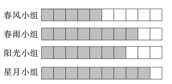 (1)春风小组收集矿泉水瓶____个,春雨小组收集矿泉水瓶____个,阳光小组收集矿泉水瓶____个,星月小组收集矿泉水瓶____个。