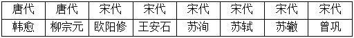 如下表,“唐宋八大家”是唐代和宋代八位有杰出成就的散文家的合称。下表中唐代的散文家比宋代的散文家少占“唐宋八大家”的( )