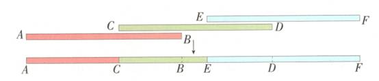 10.(本小题12分) 如图,三根纸条像下面这样重叠并做成一根长纸条。AB,CD,EF三根纸条长度一样。(在横线上填“大于”“小于”或“=”)